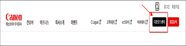 검색창에 ' 캐논드라이버' 를 검색 합니다. 사이트에 들어가면 우측 맨위에 '다운로드센터' 가 보입니다. 클릭해주세요.