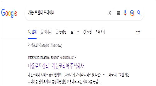 구글에 "캐논 프린터 드라이버" 를 검색하여 첫 번째로 나온 다운로드센터를 클릭한다.