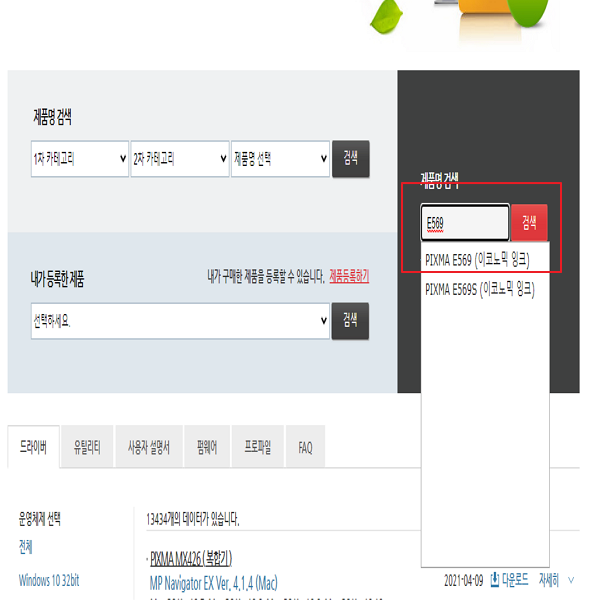 [ 캐논 E569 복합기 드라이버 다운로드]