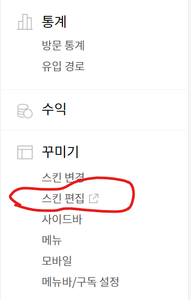 설정에 블로그관리자홈- 꾸미기에 스킨편집- 우측위 html편집 클릭- 맨위 두번째 css클릭