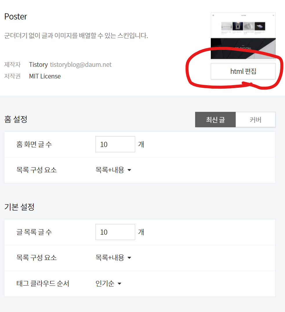 지금 작성한 방법은 PC버전용이라 모바일버전용 에서 확인했을 때는 그대로에요. 모바일(핸드폰)에서도 티스토리 블로그 관리 설정에 들어가셔서 위 방법과 같이 그대로 해주시면 모바일에서도 1:1비율 썸네일이 적용될거에요!